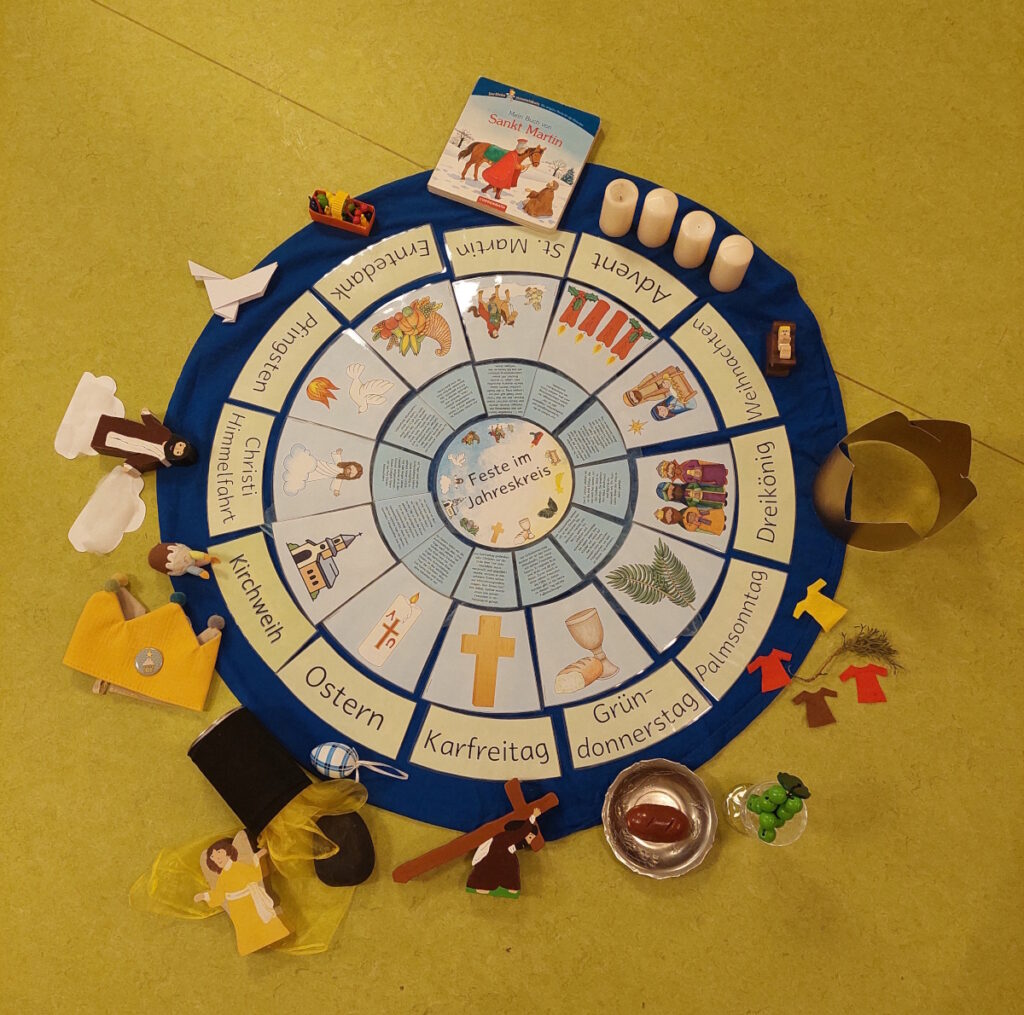 Gemeinsam entdecken wir, wie wir – auch als die Kleinen – ein wichtiger Teil unserer Gemeinde sind. Außerdem begleitet uns durch das Jahr der christliche Jahreszeitenkreis, mit seinen besonderen Festen im Kirchenjahr.